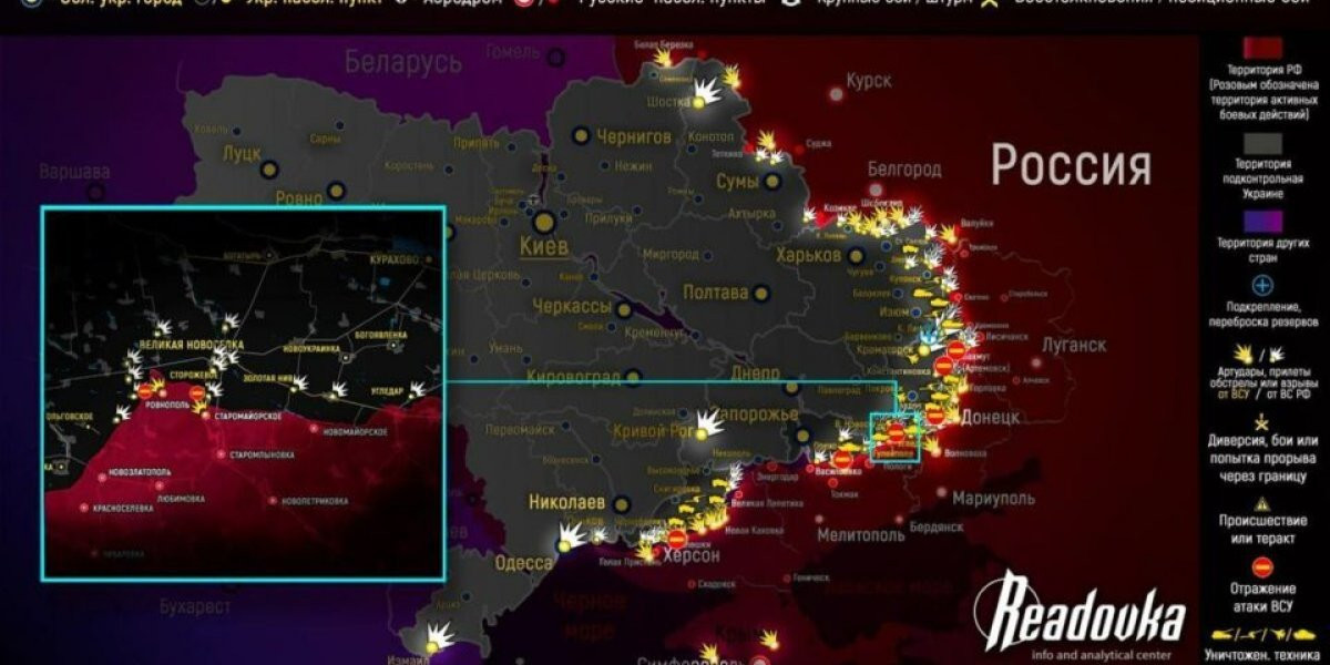Донецкое направление: на Авдеевском участке без особых изменений. В Марьинке также ВС РФ продолжает штурмовать западные окраины. Тем не менее, российские бойцы перешли в наступление к северу от Новомихайловки, заняв два украинских опорника.