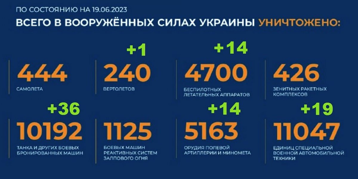 19. Актуальный брифинг Министерства обороны РФ о ходе проведения специальной военной операции на территории Украины по состоянию на 19 июня 2023 года. Сводка боевых действий на Украине.