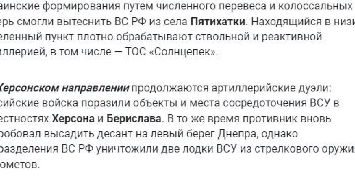 По информации украинского Telegram-канала “Политика страны”, подполковник ГУР Украины Денис Десятник не исключил, что его стране, возможно, придется передать часть своей территорий России.