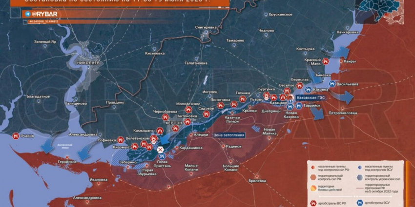 27. Карта боевых действий на Украине, Ситуация на херсонском направлении к утру 20 июня 2023 г.: