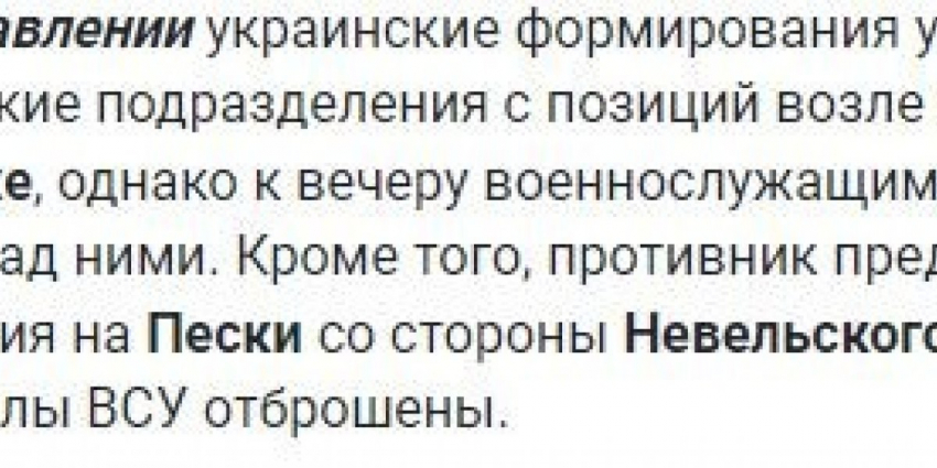 Минобороны отмечает, что в последние сутки наиболее активные боестолкновения происходили именно здесь. При содействии авиации отражены три атаки Вооруженных сил Украины (ВСУ).