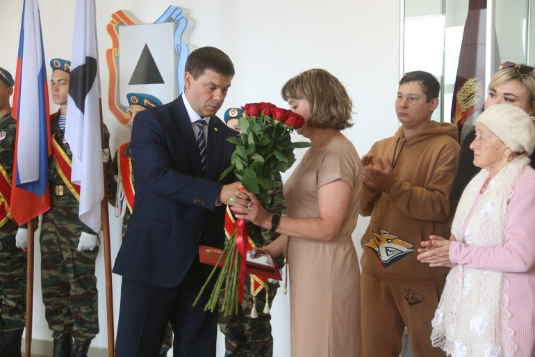 Высокую награду родным военных Рустама Гумирова, Сергея Чумичева, Сергея Варенникова и Евгения Литвишко вручил исполняющий обязанности главы города Максим Москалёв. Также он выразил соболезнования семьям погибших.