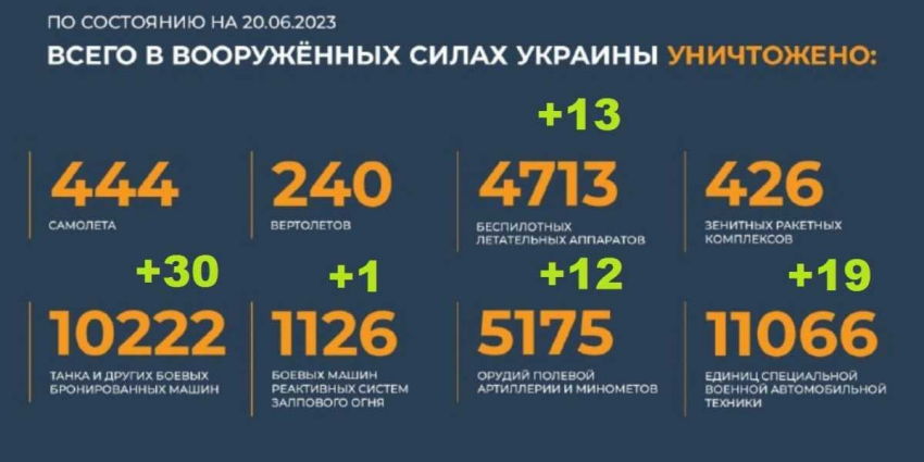 Сводка Министерства обороны Российской Федерации 21.06.2023 г.
