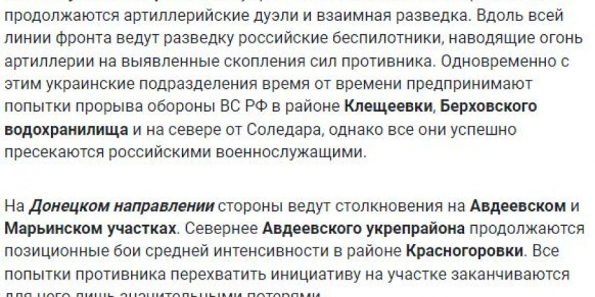 ВСУ снова пытались штурмовать позиции ВС РФ в районе Соледара ДНР, но все атаки также были отбиты российскими военными, а противник понес крупные потери.