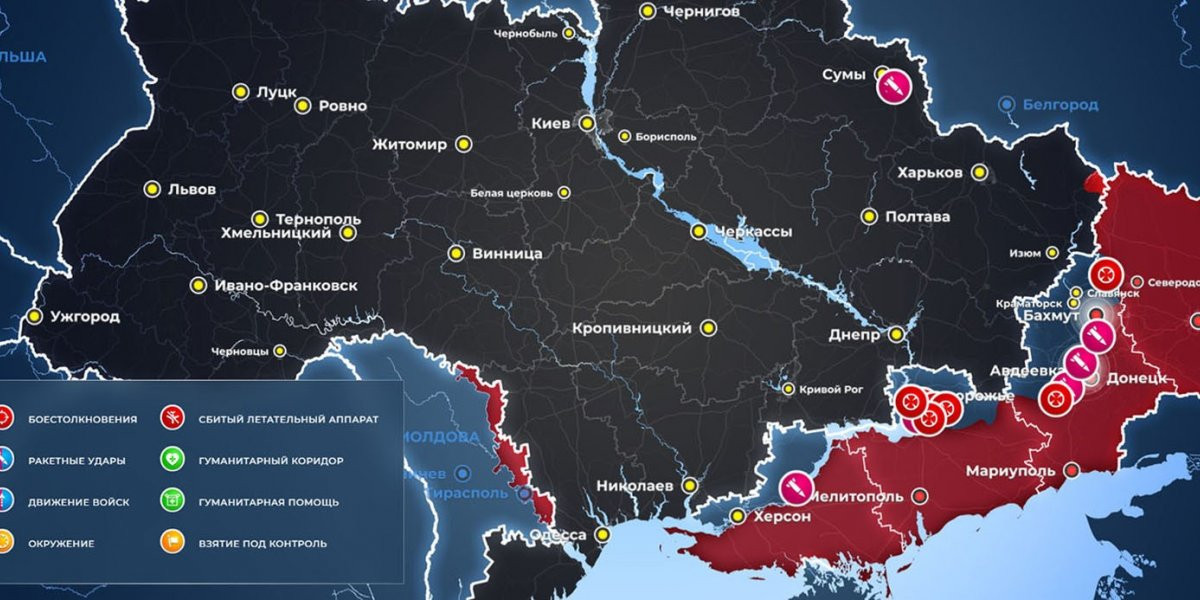- Карта боевых действий на Украине сегодня, Общая обстановка 22 июня 2023 года от Mash