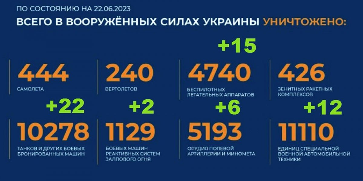 - Актуальный брифинг Министерства обороны РФ о ходе проведения специальной военной операции на территории Украины по состоянию на 22 июня 2023 года. Сводка боевых действий на Украине.