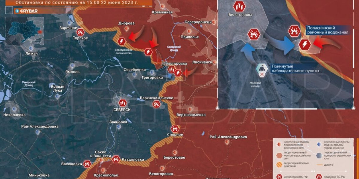 ВС РФ перешли в контратаку на Артемовском направлении: Карта боевых действий на Украине сегодня, 22 июня 2023 — новости фронта Донбасса, обзор событий, Карта СВО, Новости СВО день 484-й