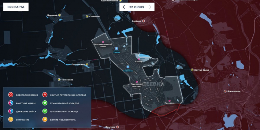 - Карта боевых действий на Украине сегодня, обстановка 22 июня 2023 года от Mash. Бои за Авдеевку