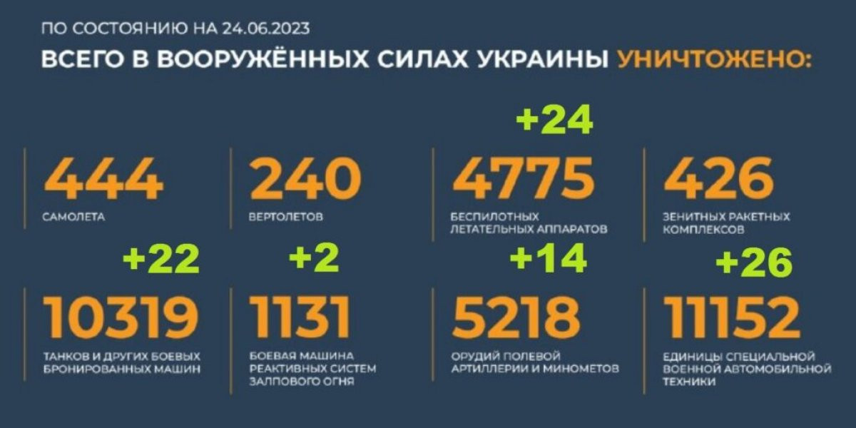 17. Потери Украины на сегодня 24.06.2023 г. Брифинг Минобороны РФ