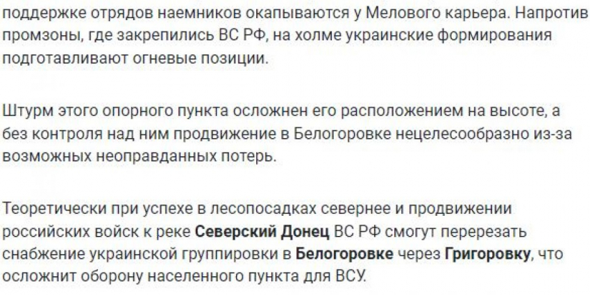 Сватово-Кременное направление: российская армия продолжает наступать в Серебрянском лесничестве под Кременной, а также штурмует укрепрайоны боевиков в районе Белогоровки;