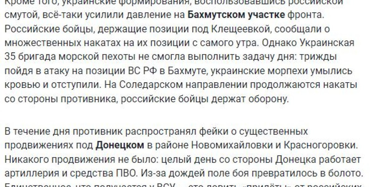 Фронтовая сводка Семена Пегова за 25.06.23 г. — Варгонзо (WarGonzo последние новости):