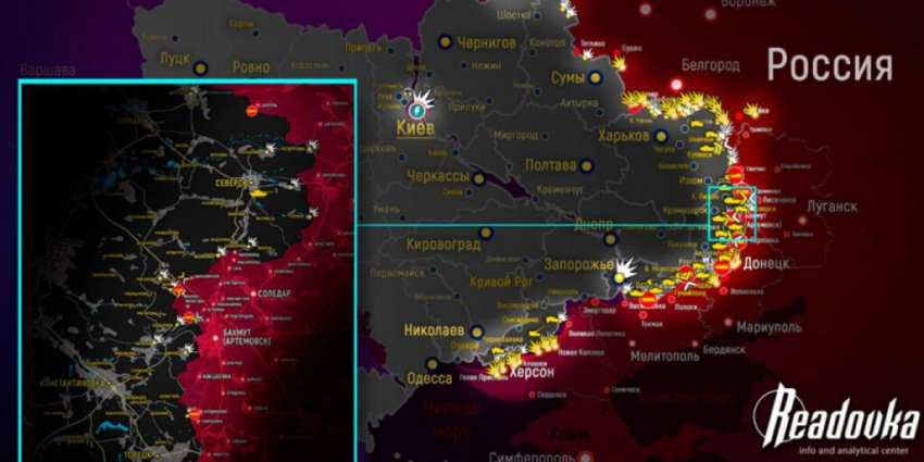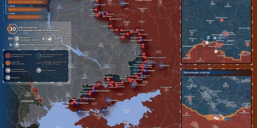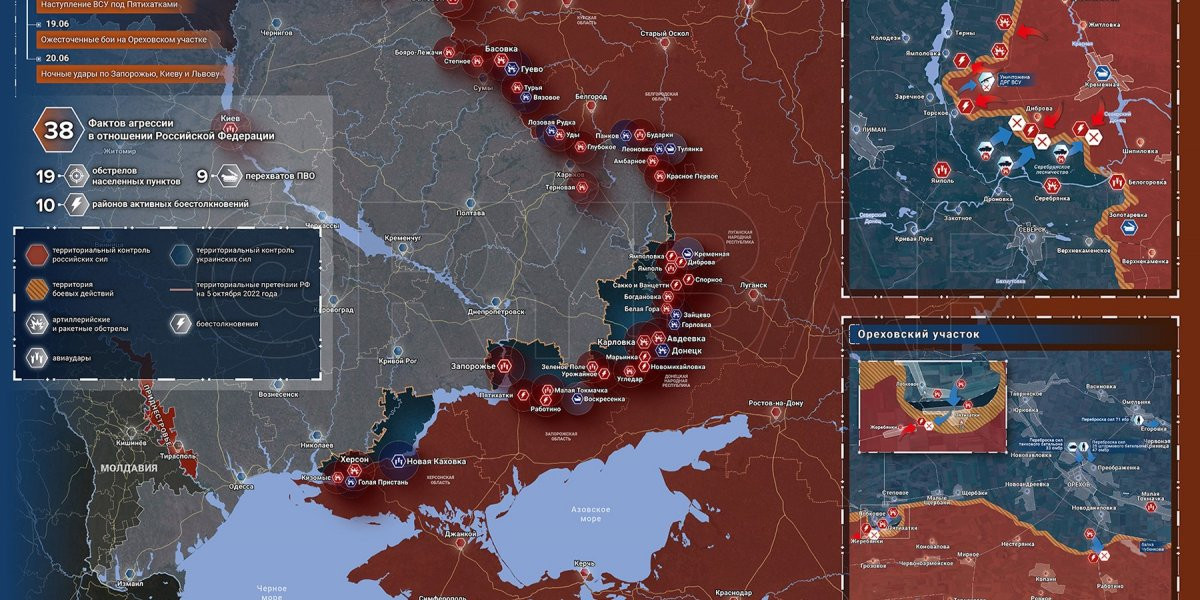 - Карта боевых действий на Украине, к утру 26 июня 2023г., от РИА Новости. Карта специальной военной операции.
