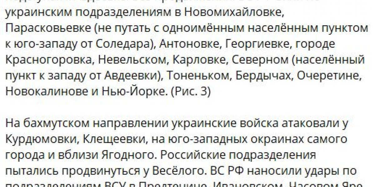 - Карта боевых действий на Украине сегодня, обстановка к утру 26 июня 2023 года от Mash. Бои за Авдеевку