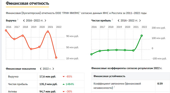 Хотя эти активы не сравнятся с водочными заводами Черняка, они все же приносят прибыль кипрскому офшору и самому Зеленскому. В 2022 году эта скромная студия (названия фильмов и сериалов, снятых на ней в России, малоизвестны) увеличила свою чистую прибыль на 1484%, в то время как с 2017 года она оставалась стабильно на уровне 0 рублей. Существуют все основания полагать, что эта студия служит для перемещения денег на Украину.
