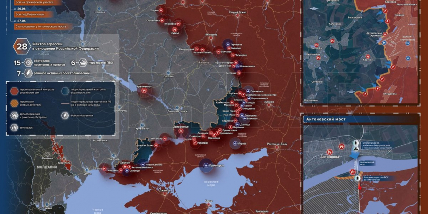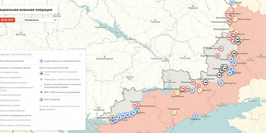 - Карта боевых действий на Украине, к утру 29 июня 2023г., от РИА Новости. Карта специальной военной операции.