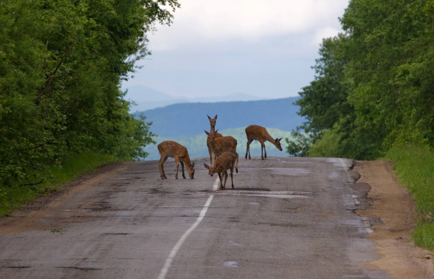 Пятнистые олени на трассе Терней-Пластун. Фото: Светлана Сутырина