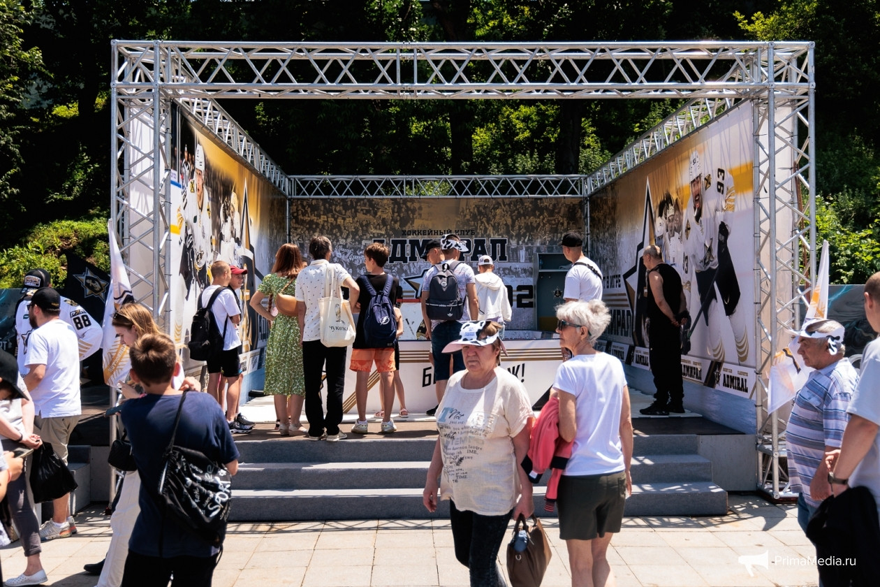 В локации еще одного партнера мероприятия — хоккейного клуба “Адмирал” была организована специальная площадка с фотозоной и бросковой зоной — “лед на пляже”. Здесь каждый мог попробовать себя в роли хоккеиста. С гостями праздника на площадке лично общался действующий игрок команды, нападающий Иван Емец. Его присутствие стало настоящим сюрпризом для многочисленных любителей хоккея.
