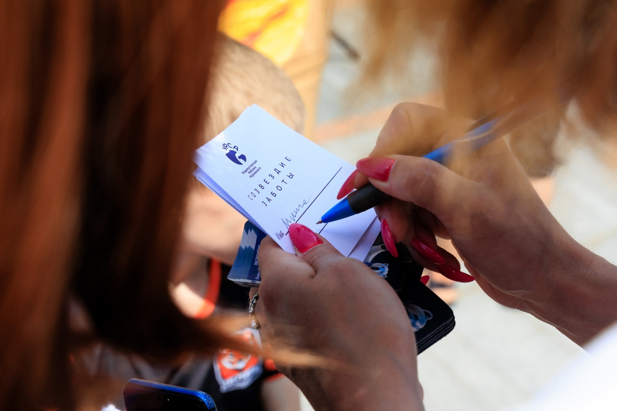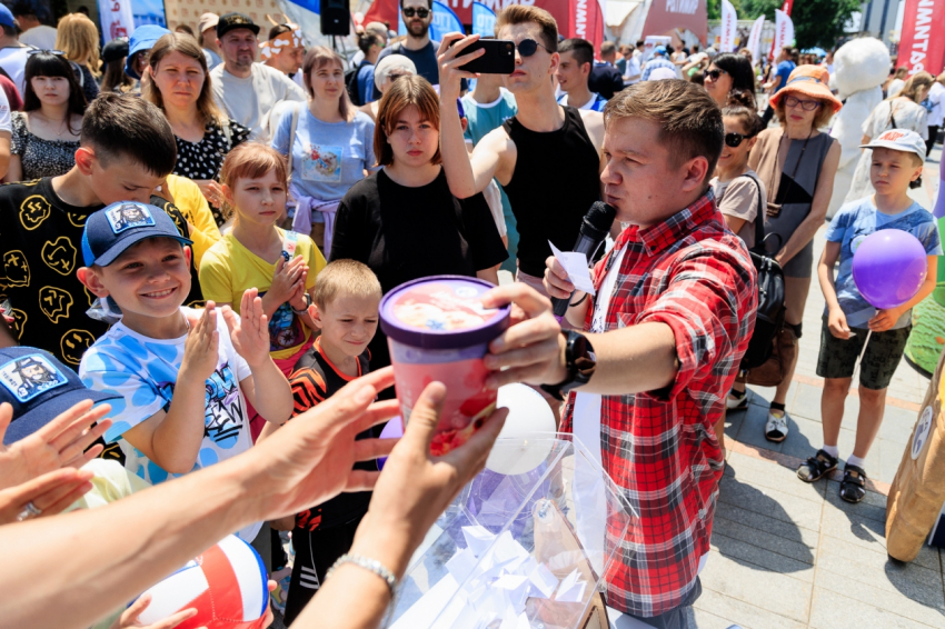 Дети, а вместе с ними и взрослые, активно принимали участие в праздничной лотерее. Каждые полчаса команда “Урсы” определяла трёх счастливчиков, которым доставались волейбольные мячи и ведёрки свежайшего мороженого для всей семьи.