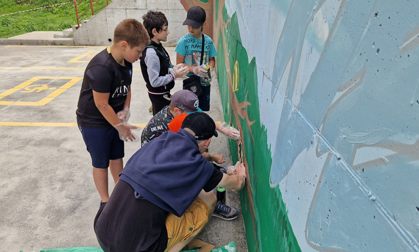 Стартом проекта “ЭкоУлица” стало декорирование на экологическую тематику двух бетонных стен возле домов № 3 и № 15 на улице Сочинской. Эта работа позволила повысить эстетическую привлекательность двух площадок для сбора ТБО. Партнеры проекта — профессиональные художники со 2 по 4 июня мастерски привели стены в порядок.