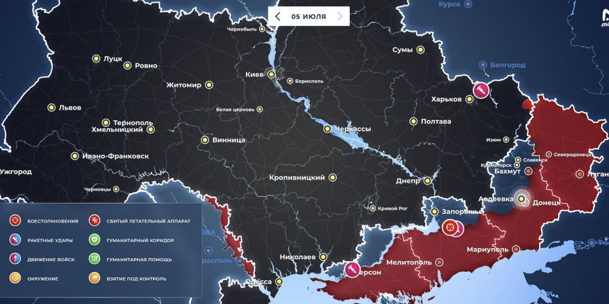 - Карта боевых действий на Украине сегодня, Общая обстановка 5 июля 2023 года от Mash