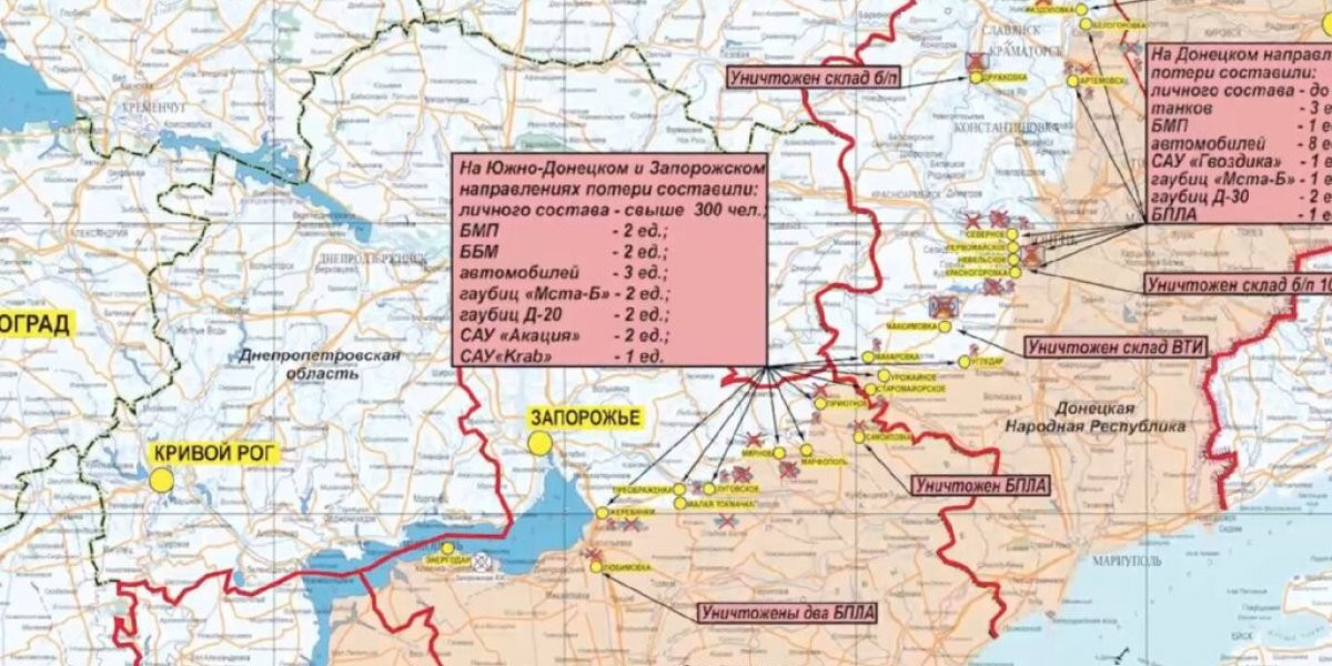 Первые наступательные действия ВСУ в зоне боевых действий начали появляться 4 июня. Основными направлениями удара были выбраны донецкое, запорожское и южно-донецкое направления. За месяц украинские войска понесли большие потери не только в живой силе, но и в военной технике, в том числе иностранной, включая танки Leopard.
