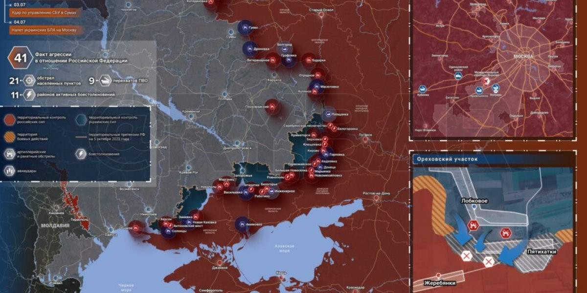 - Карта боевых действий на Украине сегодня, Общая обстановка к утру 6 июля 2023 года от Mash