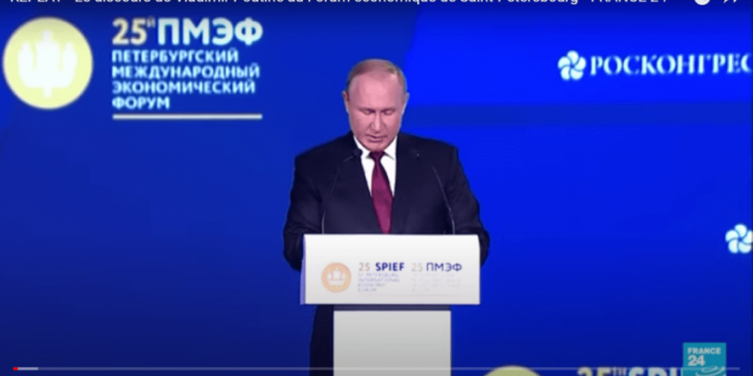 А затем этот же мэйнстримный канал транслирует 48 минутное выступление президента России на ПМЭФ-22. К слову сказать, выступление Макрона на конференции в Киеве тот же канал, извинившись перед зрителями, прервал на политическую предвыборную рекламу.