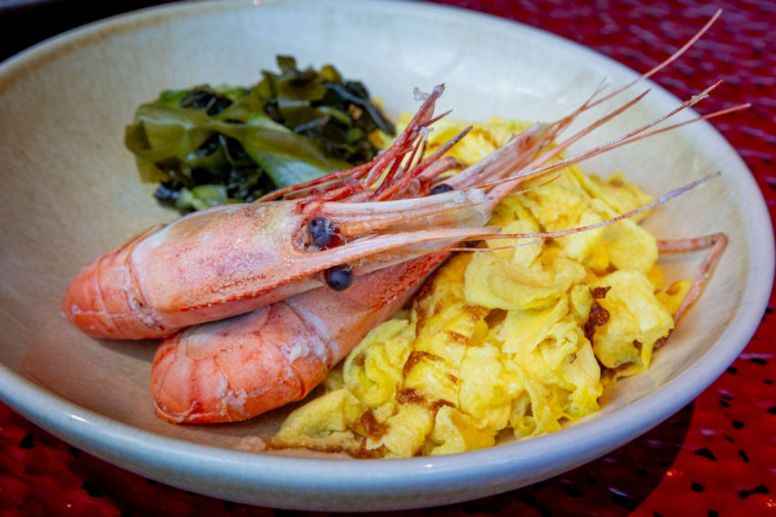 Обыкновенный омлет может заиграть другими красками в руках первоклассных кулинаров, убедились участники дегустации. Для следующей подачи его нарезали “лентами” и дополнили приятной кислинкой — салатом из морских водорослей и огурцов. “Вишенкой на торте” стали креветки, с которыми перед завтраком обязательно нужно проделать приятный ритуал — очистить от панциря. Делать это заранее повара не стали — для остроты “дальневосточных” ощущений.