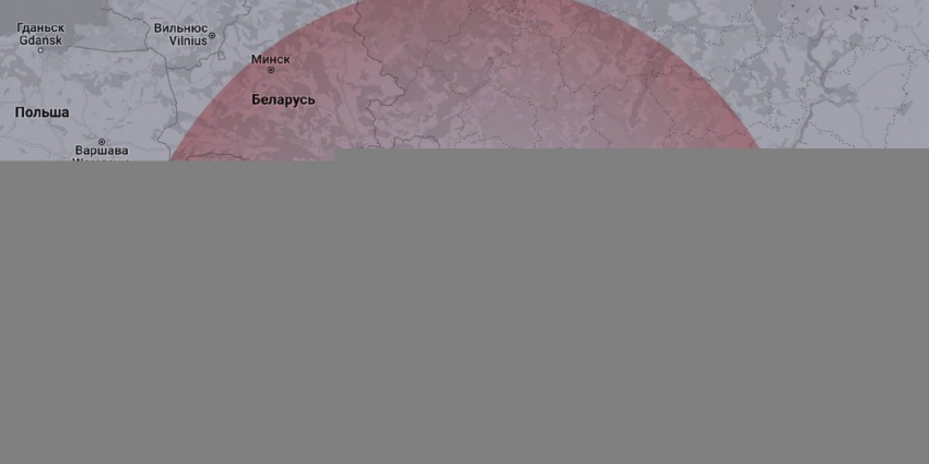 - Карта с радиусом поражения радиацией при взрыве Запорожской АЭС
