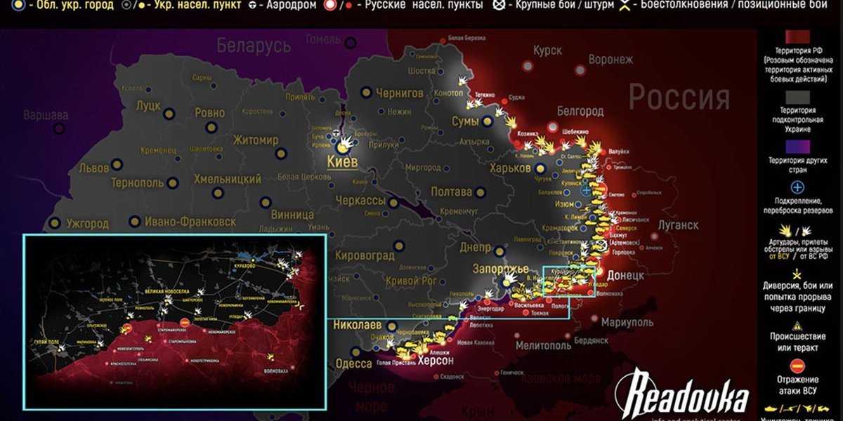 Карта боевых действий на Украине сегодня, к утру 8 июля 2023г. Карта от readovka.news