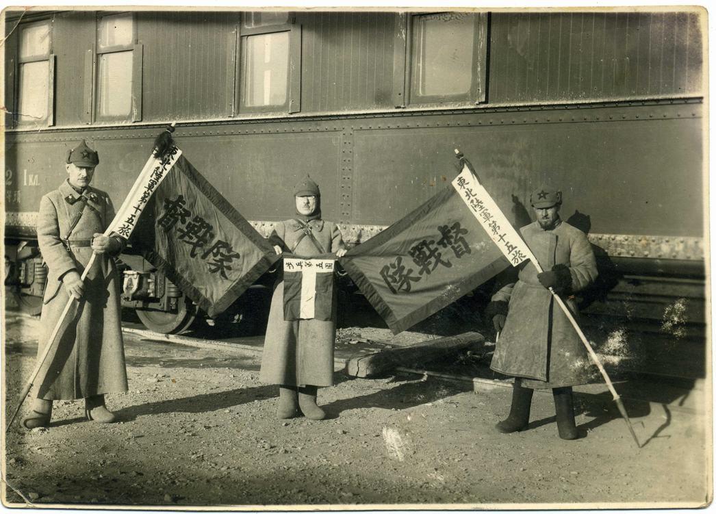 Бойцы РККА с трофейными знамёнами Чжан Сюэлянa. Фото: из открытых источников