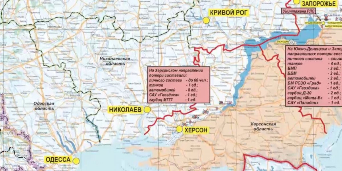 Кроме того, Конашенков сообщил, что помимо живой силы ВСУ понесли потери в военной технике: четыре бронемашины, три автомобиля, чешская РСЗО RM-70 Vampire, САУ «Мста-Б», а также американская САУ M109 Paladin.