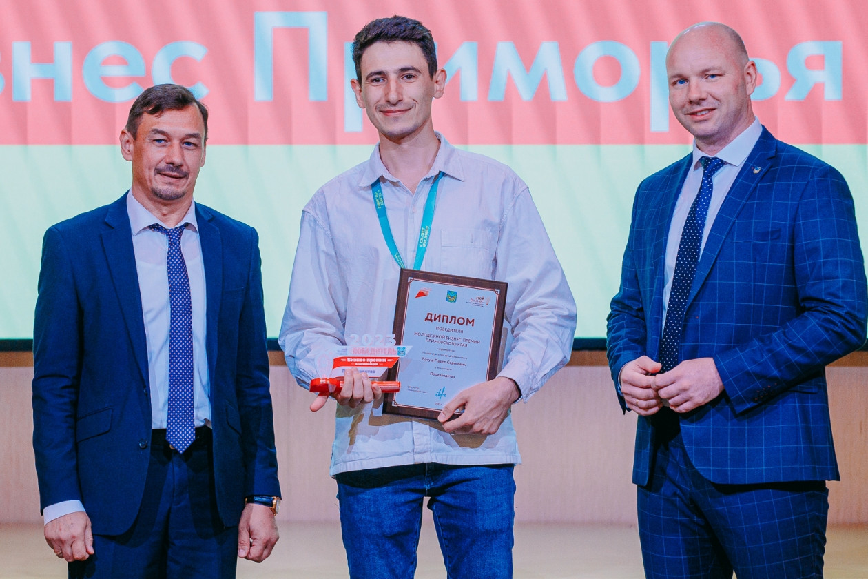 В рамках торжественного старта первого молодежного бизнес-форума заместитель министра Иван Машунин вместе с руководителем центра “Мой бизнес” Андреем Шевченко вручили награды победителям Молодежной бизнес-премии Приморского края 2023. Так, в номинации “Производство” награду получил индивидуальный предприниматель Павел Богуш, в номинации “Бизнес в сфере услуг” победу одержал предприниматель Михаил Кучеев, в номинации “Социальное предпринимательство” — генеральный директор ООО “ГК БТБ инвест” Владислав Бибеев, в номинации “Креативное предпринимательство” — предпринимательница Анастасия Онучина. В номинации “Торговое предприятие” награду получила генеральный директор ООО “БОГАТОЕ” Дарья Назаренко, в номинации “Самозанятость” — Эдуард Ващенко. Победителем в номинации “Стартап” стал генеральный директор ООО “ФИНАП” Алексей Гуцуляк. В номинации “Инновационное предпринимательство” победителем стал генеральный директор ООО “СКЮБ” Юлия Беседина.