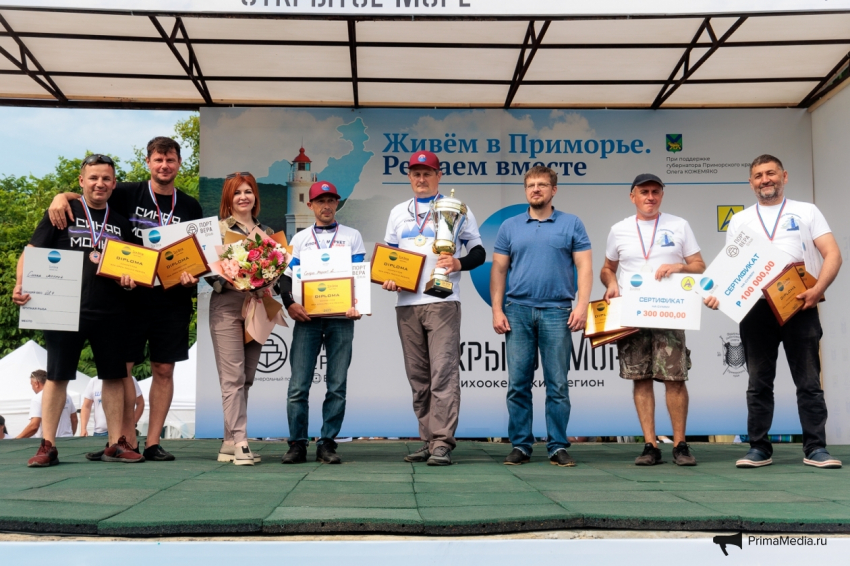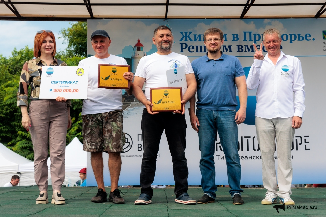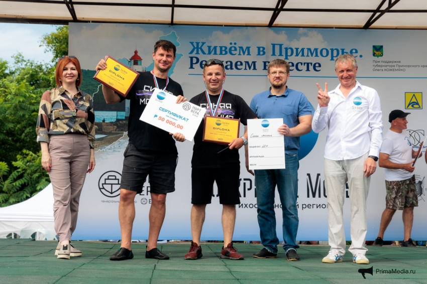 По итогам соревнований в номинации “Самая большая рыба” победу одержала команда “Бухта Преображения”. Рыбаки-любители из Владивостока выловили треску весом 11 кг 800 граммов. За такой внушительный улов им вручили сертификат на сумму 300 тысяч рублей.
