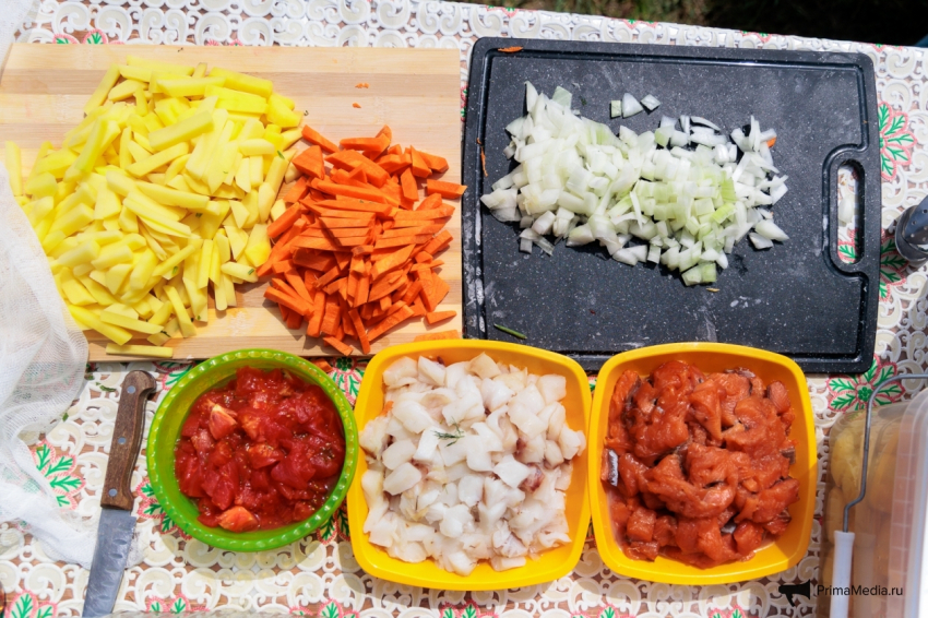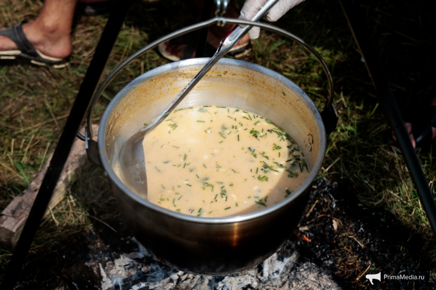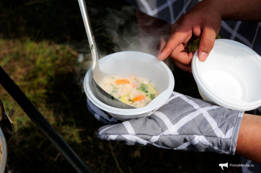 Так, одна из команд, представлявшая морской терминал “Порт “Вера”, готовила необычную уху по рецепту первых переселенцев в Приморье. Для приготовления этого рыбного супа среди традиционных ингредиентов были также использованы сливки и томаты. А для главной составляющей супа — заранее приготовили филе трески и симы. Уха получилось насыщенной и наваристой. Позже эта команда получила приз в номинации “Самый необычный рецепт”.
