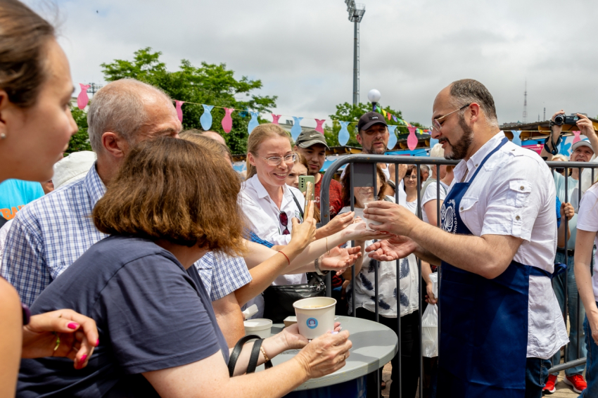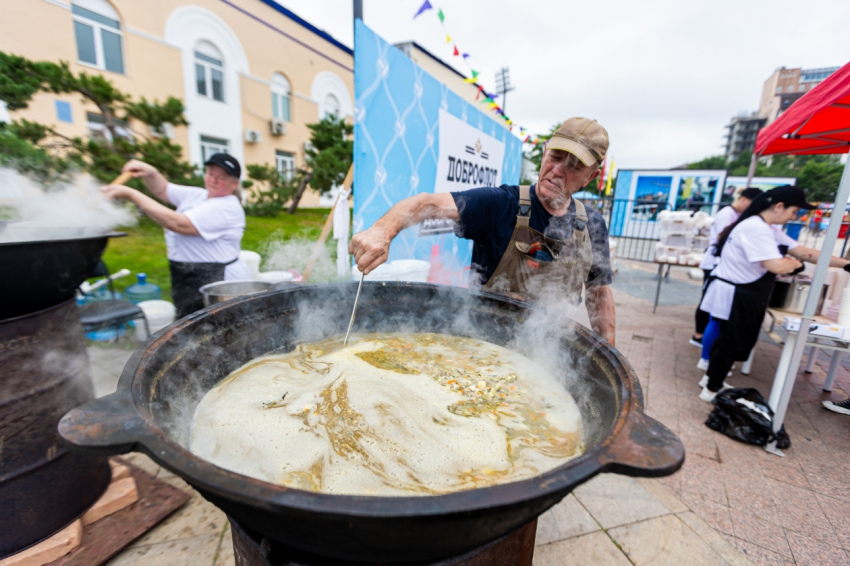 “Мероприятие прошло отлично. Раздали около 2,5 тысяч порций ДоброСупа. Варили два раза. В этом году ДоброСуп был сварен с сардиной иваси свежего, июньского лова. Традиционно была добавлена морская капуста, полезная для здоровья ламинария. Суп получился наваристый и вкусный до такой степени, что некоторые приходили за добавкой по два-три раза”, — рассказали нам в пресс-службе компании “Доброфлот”.