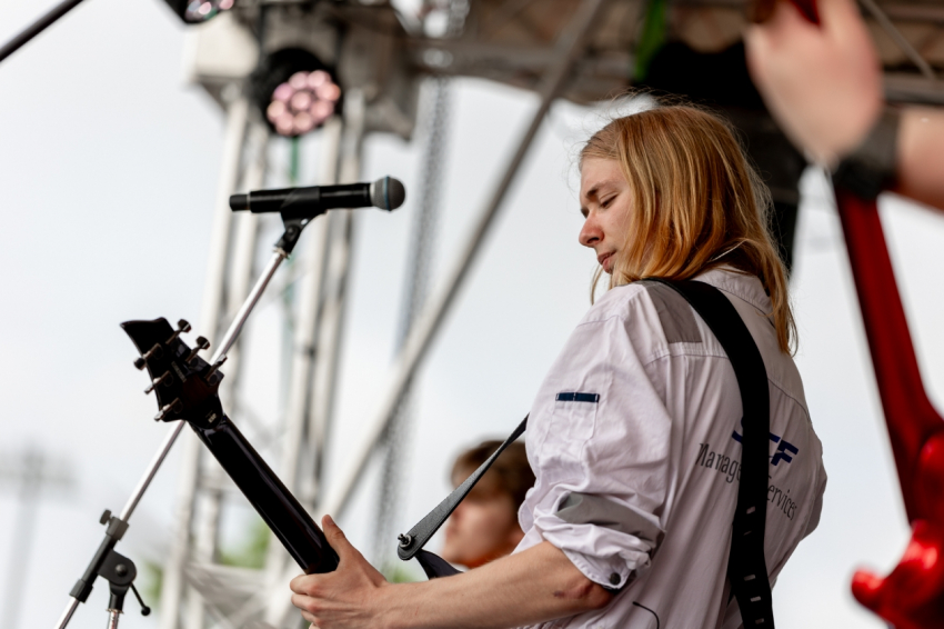 А музыканты продолжали свое выступление. Во втором, вечернем отделении на сцену вышли группы “Тесла”, Hideout и хедлайнер мероприятия группа “Evergreen”. Две последние особо популярны среди молодежи. Группа Hideout играла не только известные всем приморцам хиты (“Владивосток 2000”, 12+), но и свои авторские, которые еще не вышли на российских музыкальных площадках. Солистка группы “Evergreen” Антонина Токликишвили исполняла в основном известные хиты Ёлки, Полины Гагариной, Люси Чеботиной, Юлианны Карауловы и т.д.