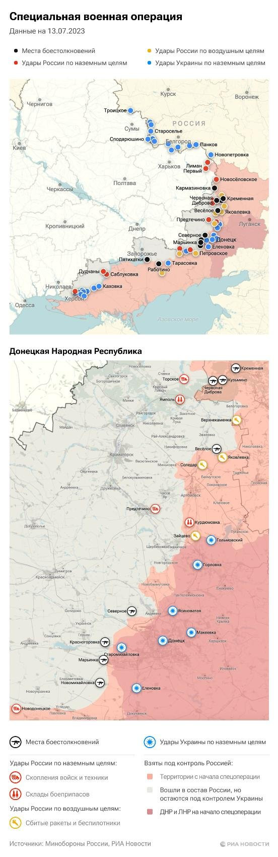 Карта боевых действий на Украине на сегодня, 14 июля 2023 года