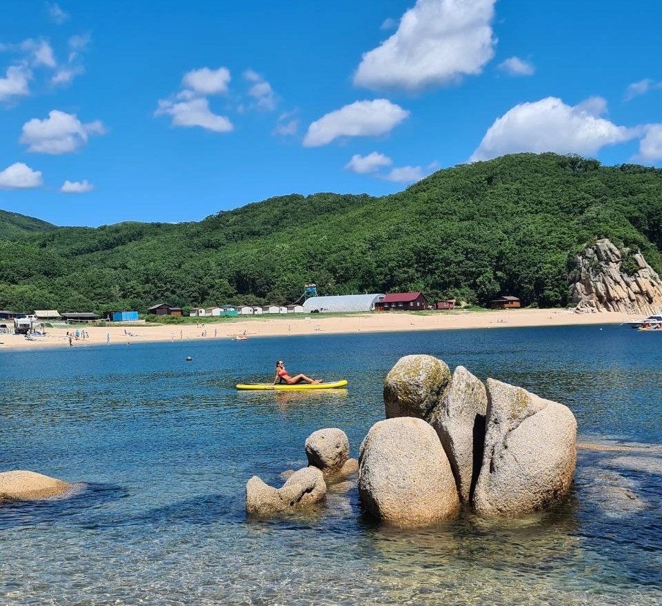 Прекрасное место, окружённое зелёными утёсами, расположилось в 3 часах езды на машине от Владивостока. Кристально чистая вода, которая прогревается к середине августа, белый песок — небольшую бухту в народе прозвали “приморским Тайландом”. Справа в бухте плавный заход в море и длинное расстояние, где не глубоко — можно с детьми.
