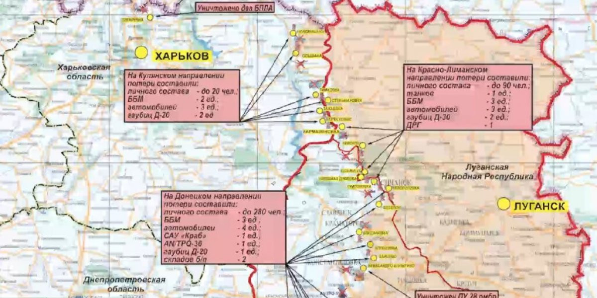 На Купянском направлении ВСУ потеряли за сутки до 30 человек. Там уничтожены два бронетранспортера, два автомобиля, гаубица «Д-20», две самоходные артиллерийские установки.