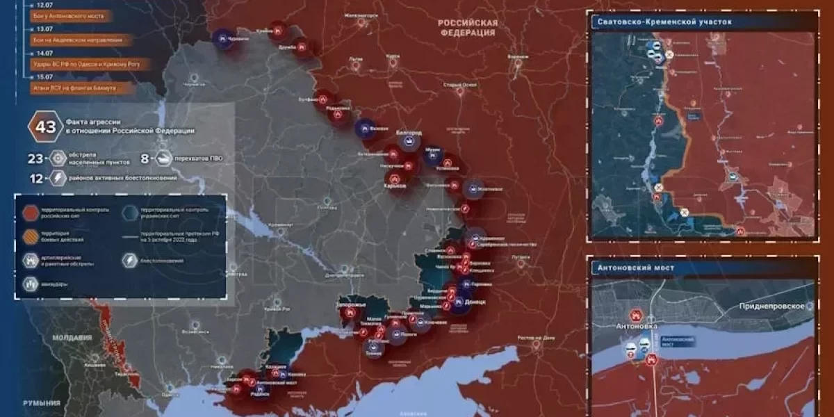 Боевые действия на Украине 16 июля 2023: новая карта боевых действий на Украине 16.07.2023. Новая карта Украины