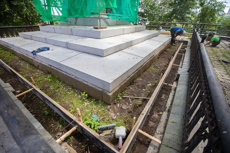 Реставрация памятника адмиралу Геннадию Невельскому стартовала во Владивостоке. Специалистам предстоит привести в порядок наружные и внутренние ограждения памятника, стилобат, убрать трещины и сколы, почистить и отшлифовать весь монумент, восстановить надписи на мемориальной табличке и провести ряд других работ. Подрядная организация планирует завершить работы в начале сентября, сообщает ИА PrimaMedia.