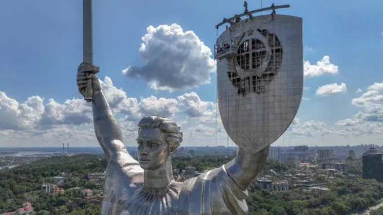 Монумент предполагается переименовать в «Украину-мать». К концу месяца вместо герба СССР на щите появится украинский герб.