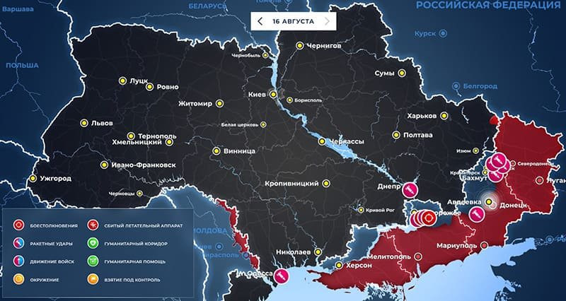 Карта боевых действий на Украине: обновленные данные по состоянию на 16 августа