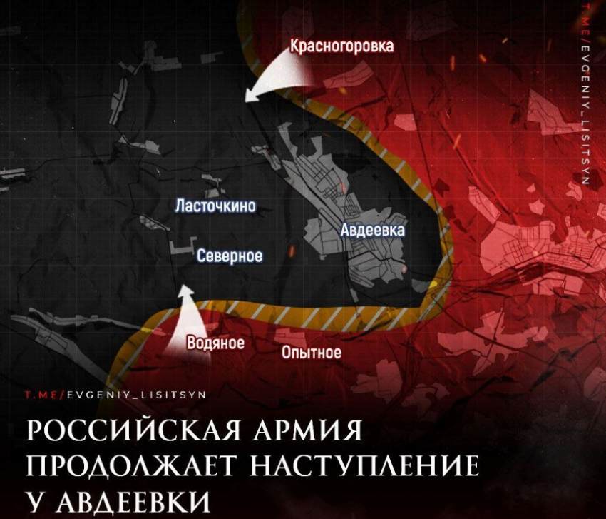 Под Авдеевкой на северном фланге российская армия ведет активные бои в направлении Новокалиново и Очеретино. В Степовом ВСУ пытались контратаковать, наши позиции удержали, пишет военкор Евгений Лисицын в своём Telegram-канале. На южном фланге армия России оттеснила ВСУ еще с ряда позиций в промзоне: пять зданий перешли под наш контроль.