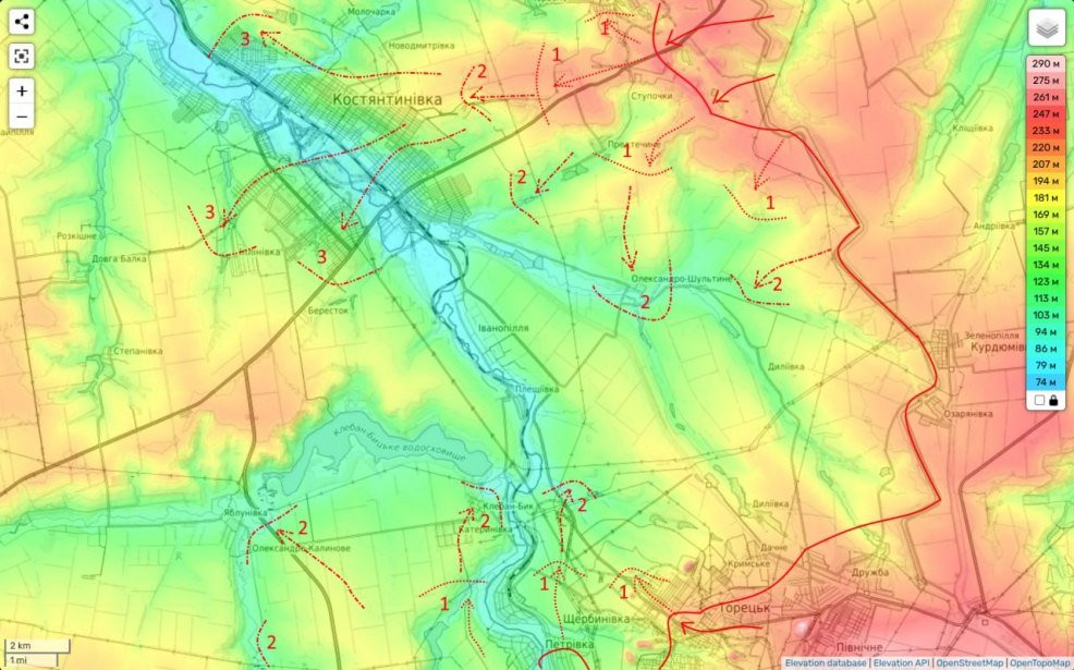 Ну и далее (карта 2) штурм Константиновки с выходом на другой берег реки Кривой Торецк с созданием таким образом удобного плацдарма для разгрома сил противника восточнее Покровской агломерации.
