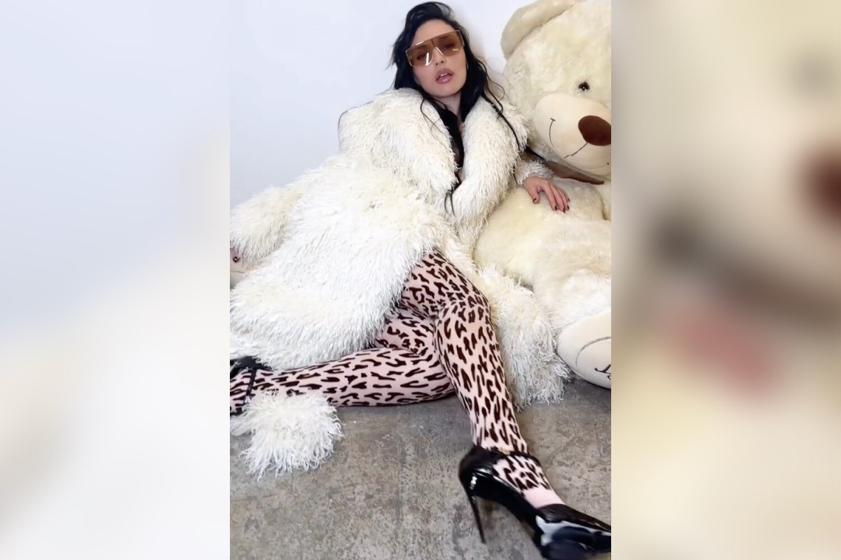 На днях Серябкина удивила свою аудиторию подписчиков в социальных сетях гламурными зимними фото. Звезда снялась в пушистой белой шубке, леопардовых колготках и черых туфлях на высоких каблуках. Рядом с ней на диванчике расположился огромный плюшевый мишка.