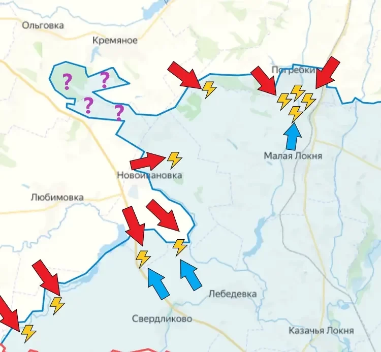 Наиболее ожесточённые и кровопролитные бои идут между Погребками и Малой Локней. Какой бы ни была точная конфигурация фронта на этом участке, продвижение вперёд даётся нам большой ценой. Враг не только отражает наши атаки, но и проводит свои контратаки.