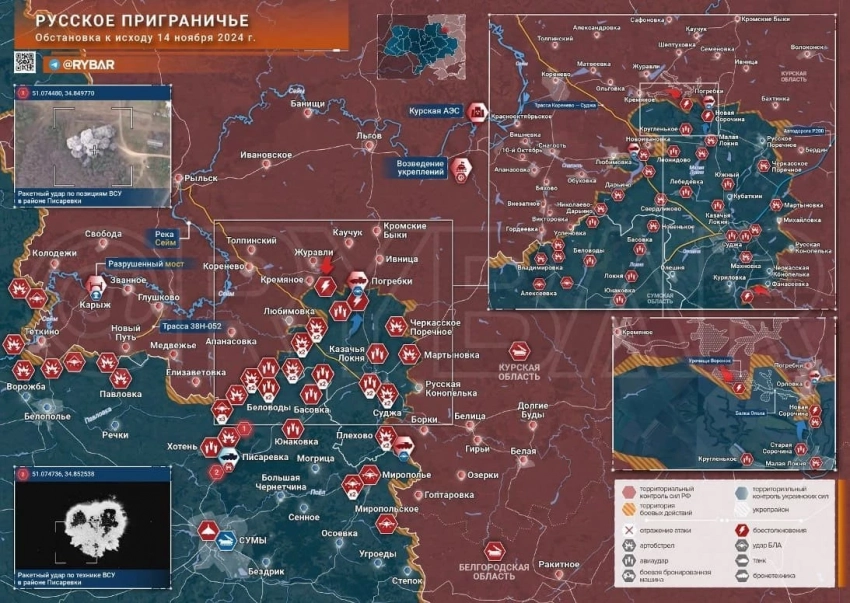 Новая карта боевых действий в Курской области по данным на 15.11.2024