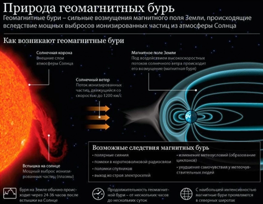 Организм человека <...> пагубно реагирует на магнитные бури из-за высокого содержания в крови железа, которое даёт высокий отклик на магнитные волны. В результате ухудшается циркуляция крови, она в недостаточных количествах поступает к сердцу и головному мозгу, отчего они в должной степени не насыщаются кислородом, - поведала специалист.